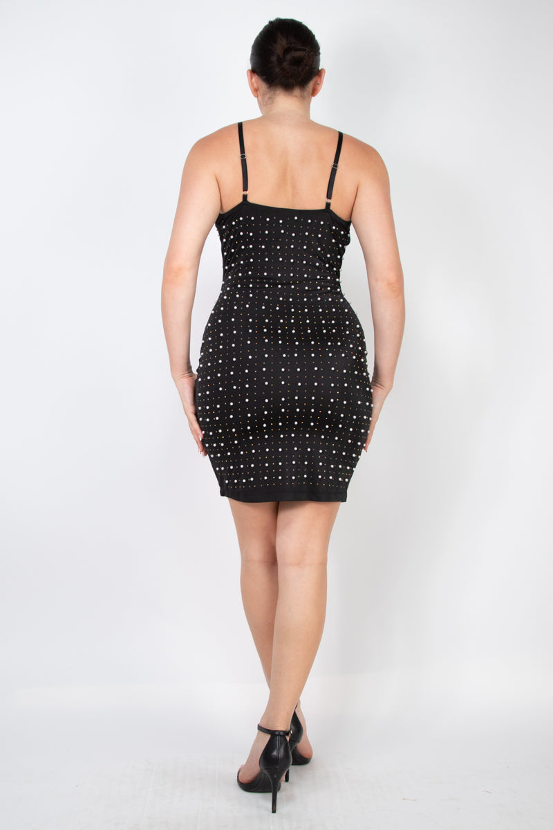 Vestido corto con perlas, entallado, tirantes delgado, escote redondo